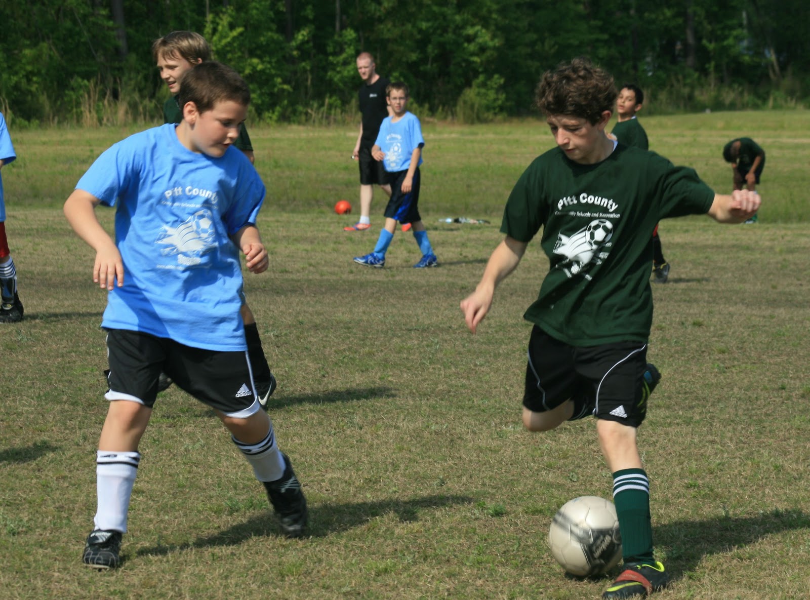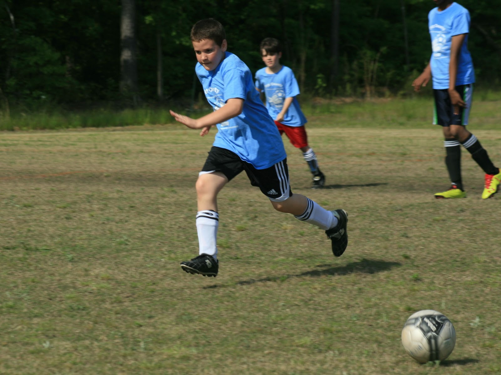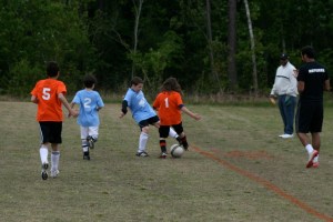 Went to see Sam play soccer today and it seemed like we were watching a match in England rather than North Carolina. Sam’s team won by forfeit as the other team didn’t have enough players until a few minutes into the game. Sam got in a couple of good kicks on defense and played over half the game. Good thing they won by forfeit though because the actual score was 2-2 at the end of the game. After the game, Rod and the boys rushed off to see Iron Man 3 at the 11:15am showing – almost completely full even that early and the boys loved it!