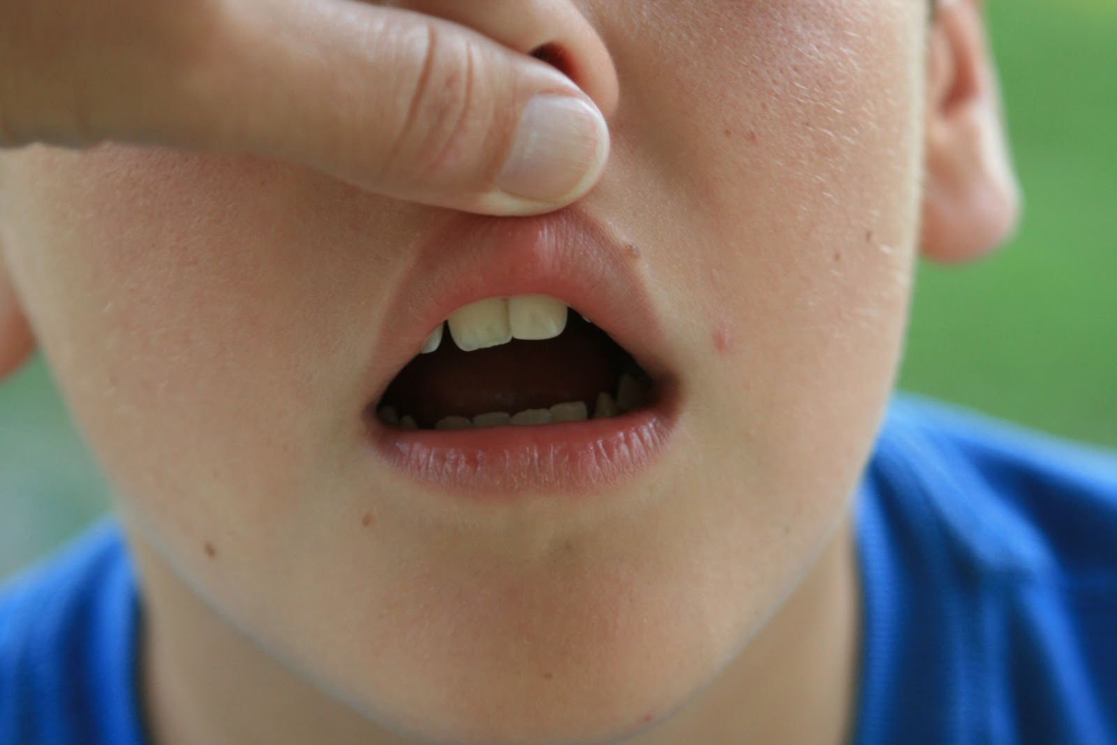 Sam had a little accident the other day at the pool. He was swimming up to the edge to get on the ladder and cracked his tooth. Today, Mom took Sam to the dentist (Coco) and he fixed him all up. When I asked him how the dentist went today he said it was awful… “they had all these fancy tools they stuck in my mouth.”