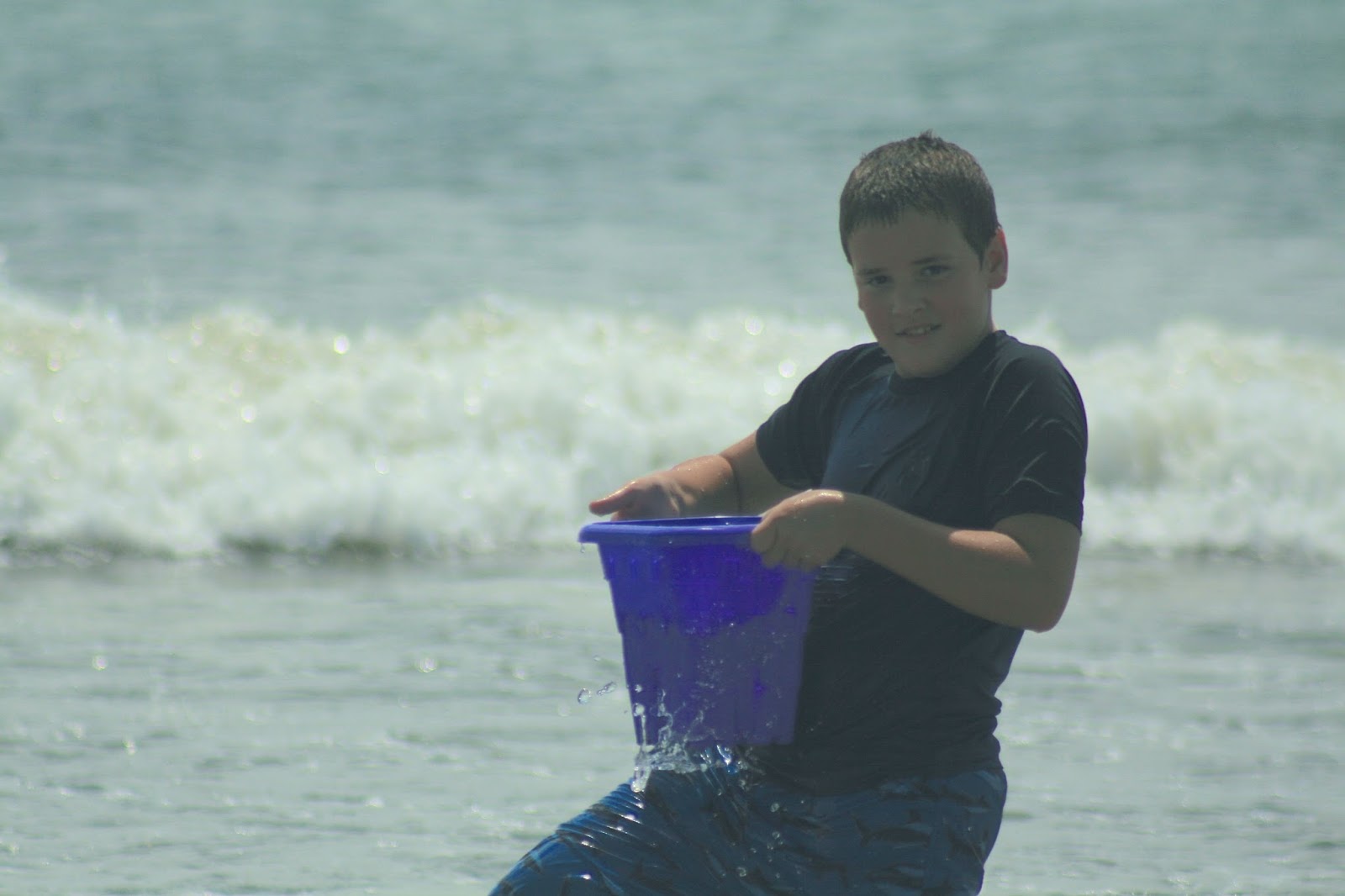 So we tried out a new beach today, Pine Knolls beach – just a little south of Fort Macon beach. It was very nice and the waves weren’t too big but they did have a lot of shells so Sam and Lis were both doing their own thing. Alex decided not to make the trip and stayed home and made a Minecraft video.