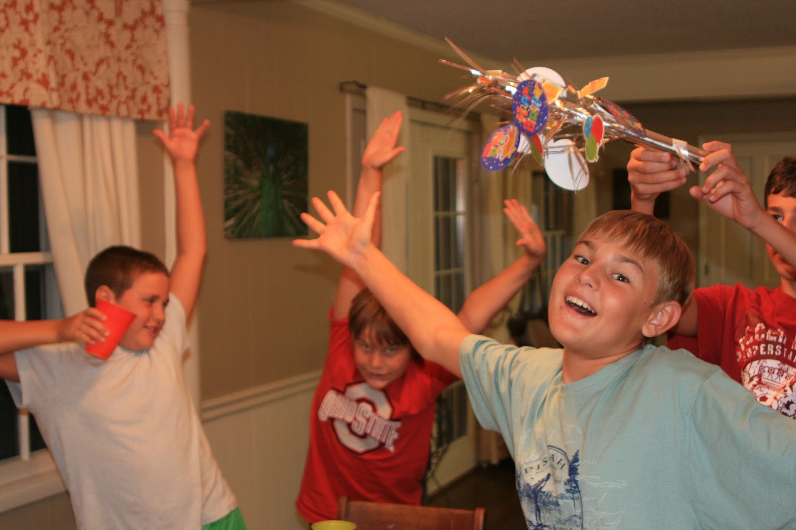 Somehow we misplaced the Birthday Cone of Shame, so we replaced it with something out of a really bad Sci-Fi show and stuck it on Alex’s head?? Reid and Drew came over to spend the night, play Minecraft on the computer, eat a little pizza, watch the new GI Joe and try to stay up as late as possible. 🙂 Everyone seemed to have a great time.