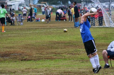 Sam’s soccer team suffered another loss today in a very wet match… it rained most of the game and at times was pretty hard. Sam’s team although losing 4-0, played a much better game today and actually had the ball on the offensive side for part of the game as well and managed one shot on goal. Sam had several good kicks to clear the ball out on the defensive side. Sam also threw the ball into play on several occasions and took a pretty good shot to the chest when one of his kicks ricocheted off the defender – both players were a little stunned at how fast it moved.