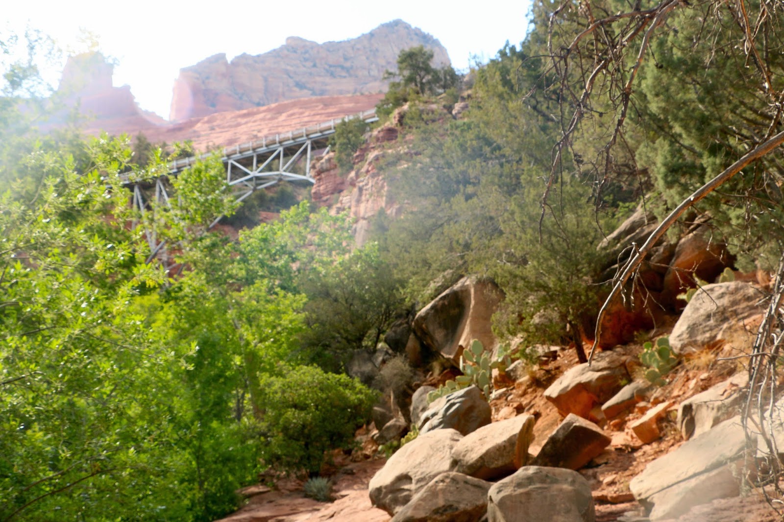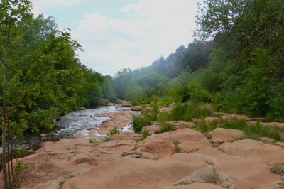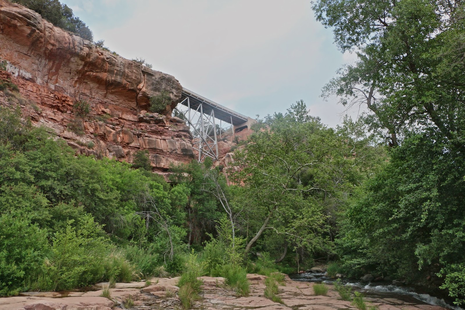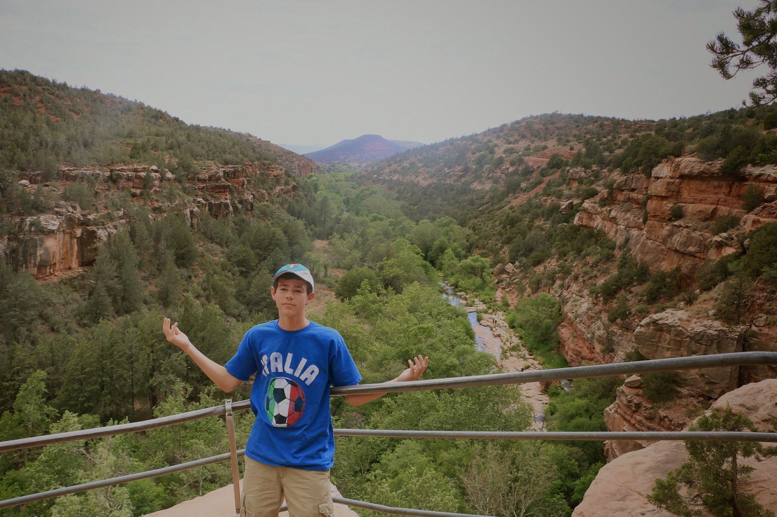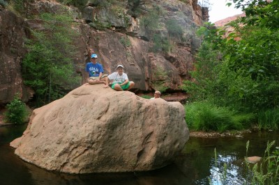 What started out to be just a short 5-10 minute stop at Oak Creek Vista, then went to let’s walk down to the bridge, followed by let’s go this way for just a little while – to…well we have come this far so we have to finish. One and a half hours later we walked down to the bottom of the canyon and back. This was definitely not for the faint of heart and much more than we expected. Oak Creek Canyon is the “smaller cousin” of the Grand Canyon and can range anywhere from 800′-2000′ deep. Sam saw a snake, Alex got all wet in the creek and we were all exhausted by the time we got back to the top, but we had fun. The photos really don’t do it justice as it was a beautiful hike.