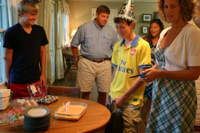 Yes, Alex turned 16 on Friday, but between work, soccer practice and a soccer game we didn’t get a chance to celebrate until today. Kelly, Joe and Reid all came over to have a nice cookout with us. Alex didn’t get many packages because we had already celebrated with Nana and Gung Gung a couple of weeks ago and he had already worn most of the rest of his gifts. 🙂