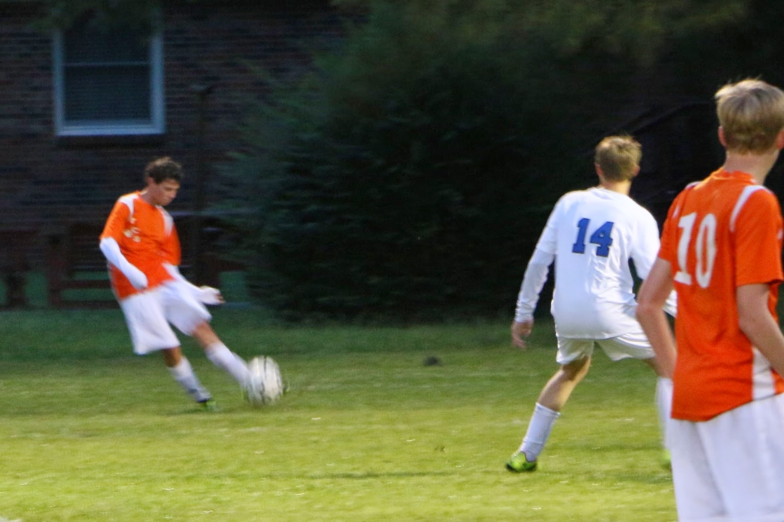 Trinity got back in the winning column with a win over GCA on Tuesday night. It rained most of the game and was quite chilly – probably only in the low 60’s. Mom and Dad were quite chilly standing on the sidelines. Alex played a good game but didn’t get any shots on goal. It was a close game up until the last few minutes when Matt took a beautiful shot from midfield. The final score was 3-1.