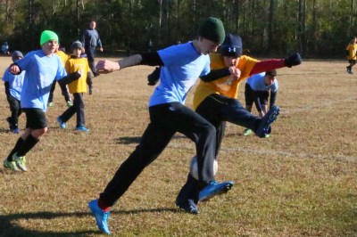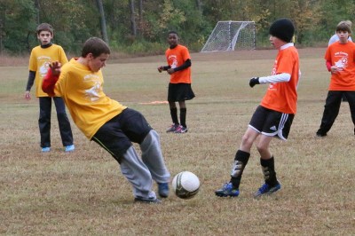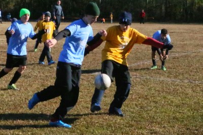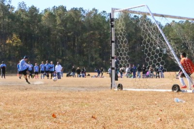 First up was Sam’s team at 9am – starting game time temperature was 45 degrees with a slight wind. Sam’s team kept it un-winning record by losing 4-1. The last time they played this team it was a double-digit loss so they are improving. Sam had a bit of a cold, but still wanted to go out and play. He is improving every game and had some good stops and a one stretch where he kicked it and followed it with another kick… sort of a dribble. We only have a few games left this fall and then spring soccer should help him improve some more before he tries out for Trinity next year (hopefully some summer tutoring too).