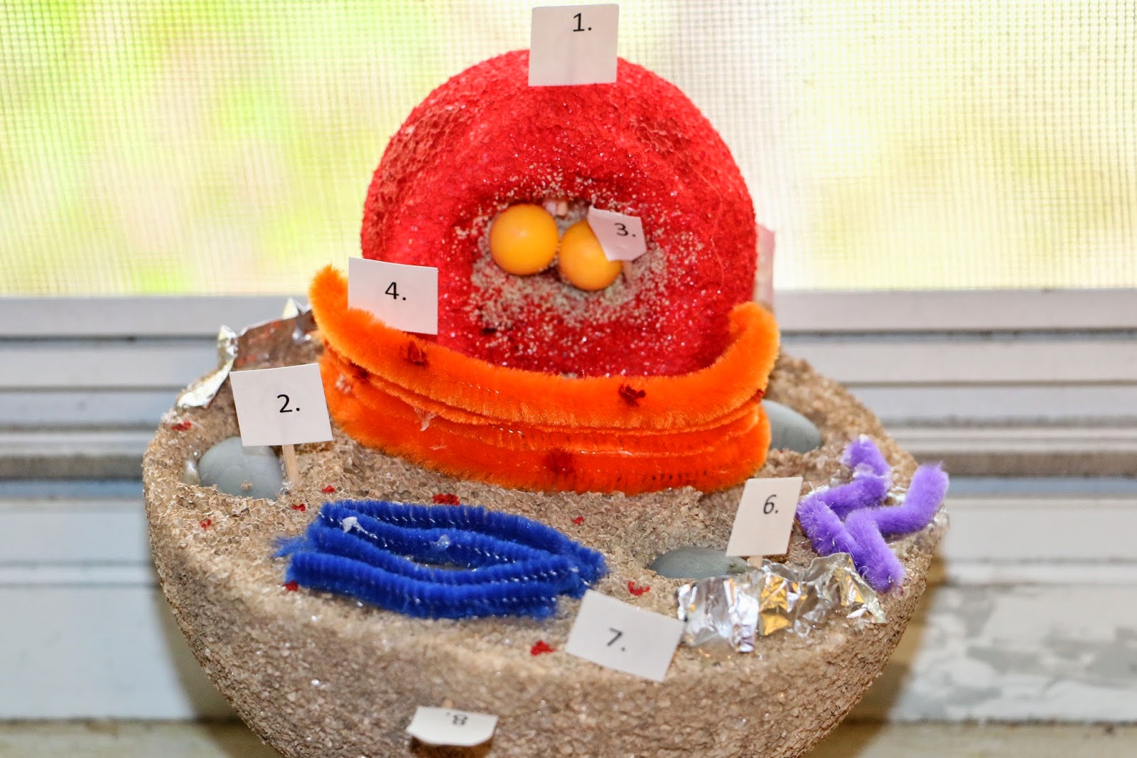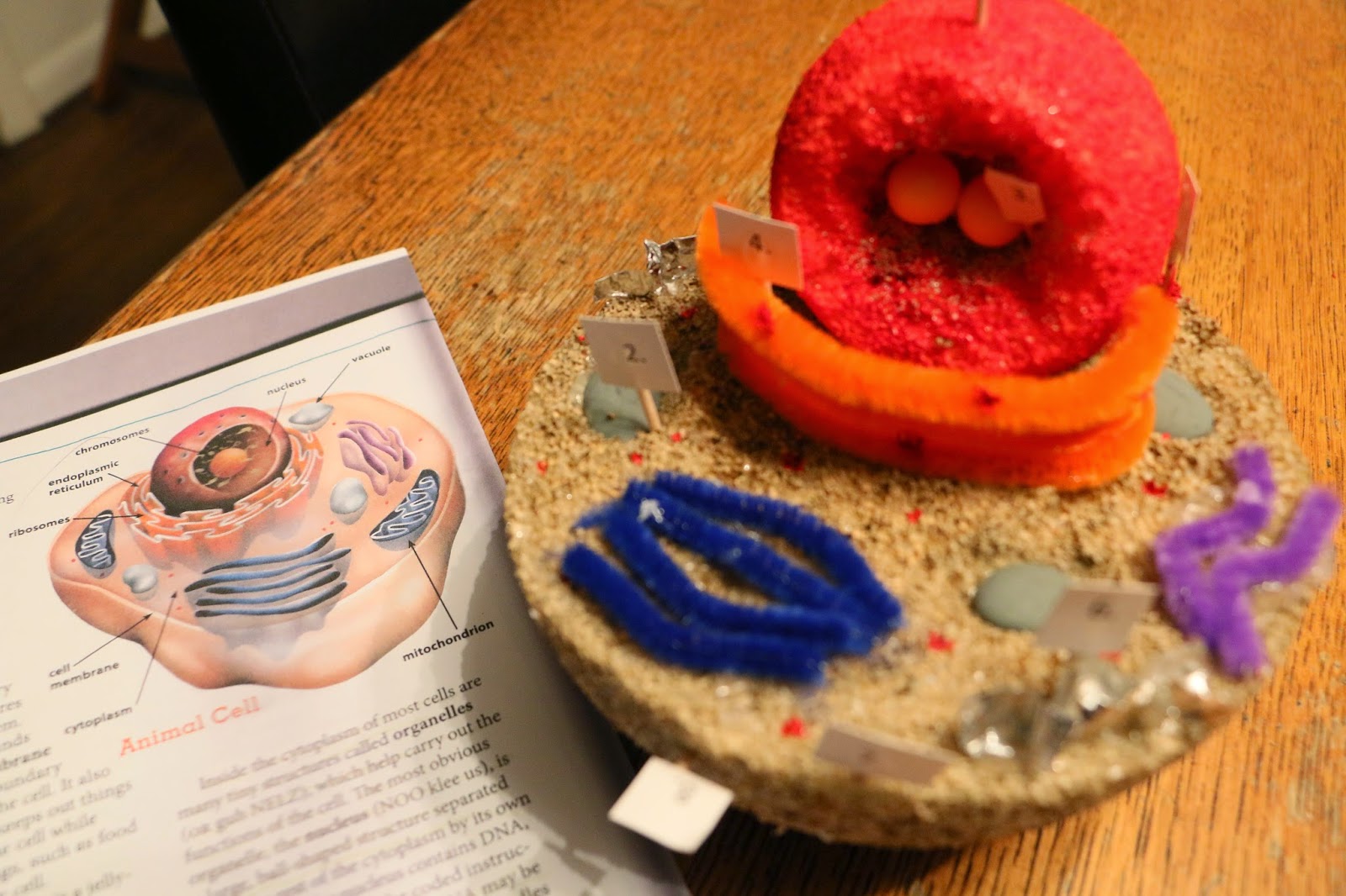 Mom scored….. we mean Sam scored a 100% on his Science project. The project was to create a 3D animal cell. He used a styrofoam balls painted and cut in half as his base and then pipe cleaners, tin foil and candy to finish it off. Since he scored 100% Sam had to take his presentation and present it to the sophomore biology class. Matt and Josh (Alex’s friends) were in the class and led the class in clapping for his presentation.