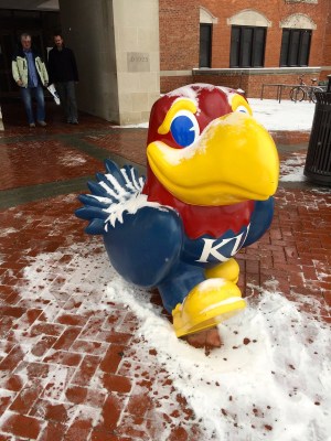 | Give Big Jay a rub for good luck at the Student Union. We parked here and walked across campus… since it was Saturday we didn’t have to pay for parking! |