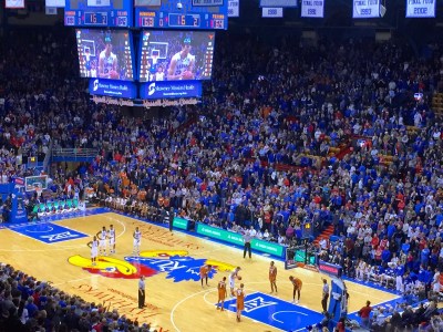 | After a grueling 38 minutes, the Hawks finally pull ahead. Definitely missing their big man Cliff Alexander today. Perry Ellis at the line with 1.6 seconds left and a 4 point lead. Perry had a double-double in the game 28 pints and 13 rebounds to lead the Jayhawks. See why AFH is the toughest place to play in all of college basketball below (114 dBa) |