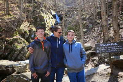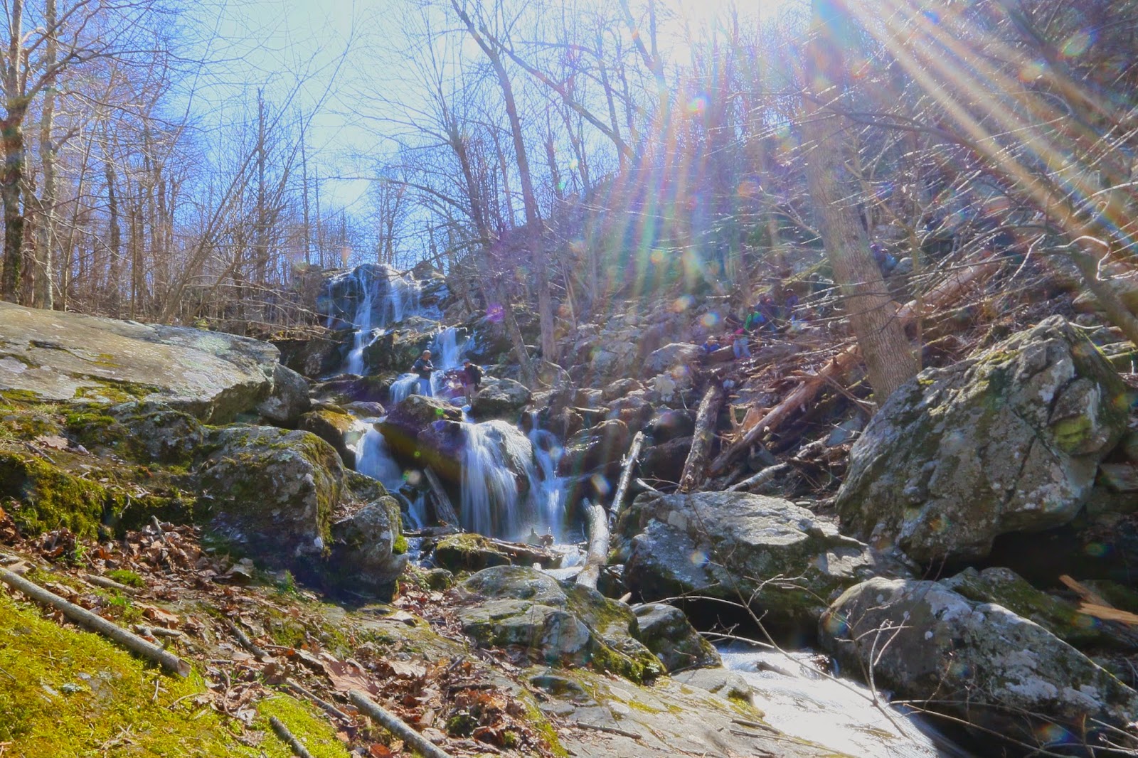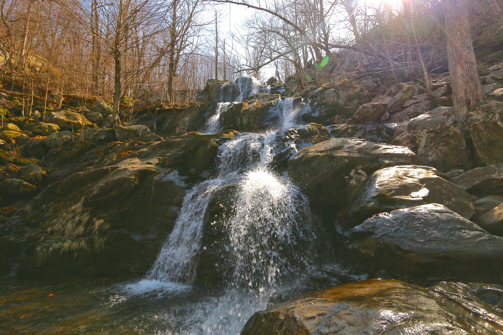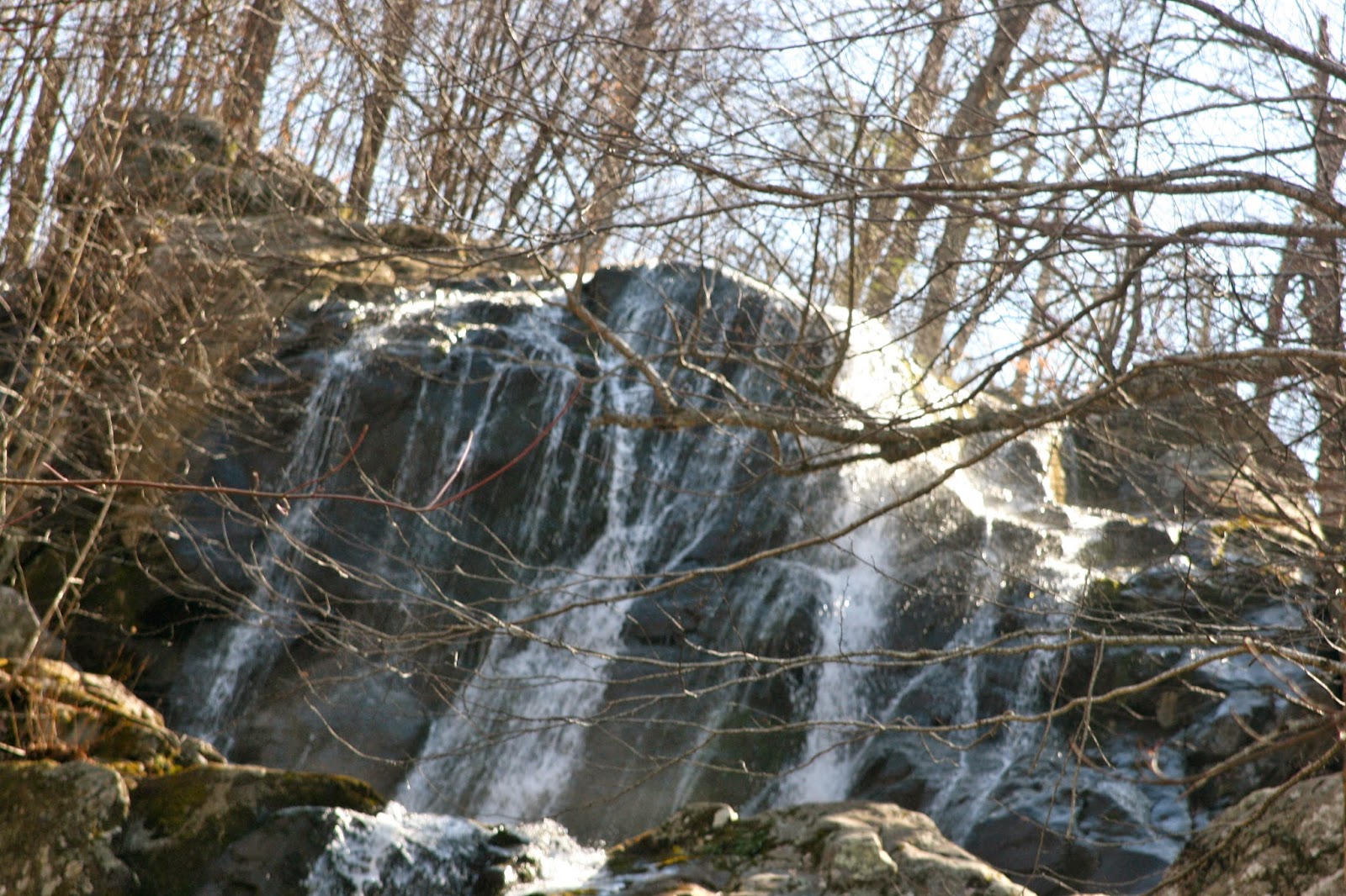 We made the trip up to Virginia for Easter weekend and managed to get a short hike in at the Shenandoah National Park. The drive was about 1.5 hours from Waynesboro but was worth the trip except of course for the cold, the wind and the fact that Mom sounded like she was dying from a lung infection. The hike was about 2.6 miles down and back to the Rose River Falls. Since it seemed like it was going to be the easiest of the hikes and the shortest we thought this would be a good place to start (there are 10 waterfalls listed in the guide). Below are some of the photos….