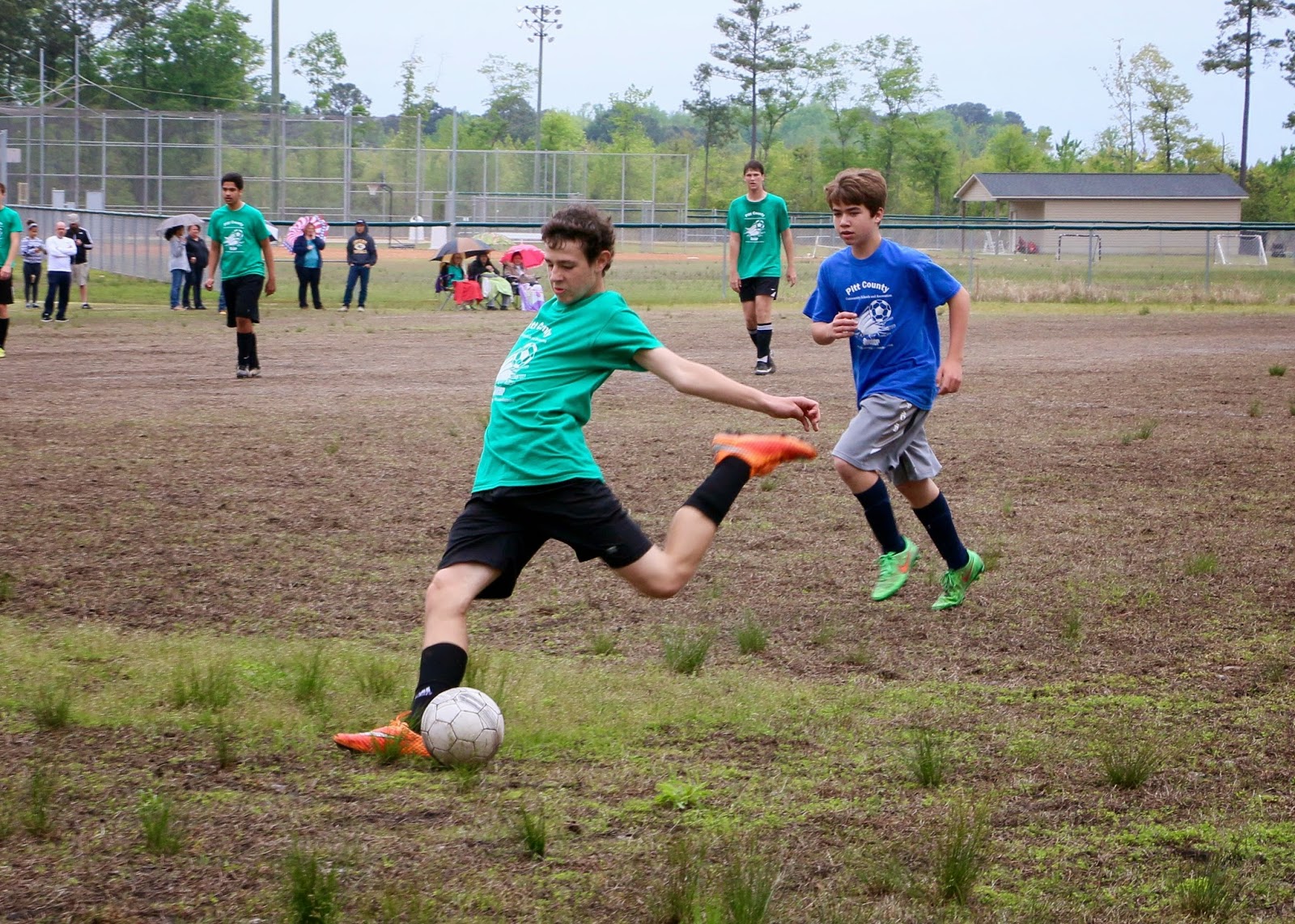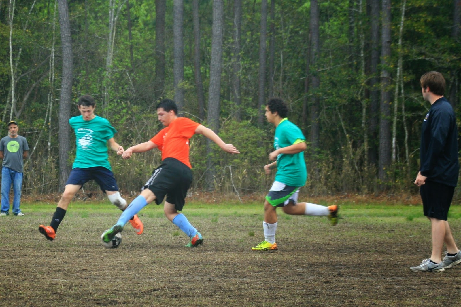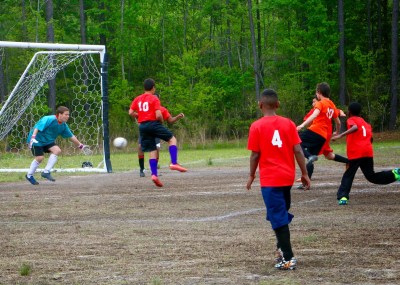 As for the games, Sam’s team lost by 1 goal as Sam had 1 good save and almost a 2nd one but it just barely rolled in (we think his own teammate might have knocked it in accidentally) – final score was 2-1. Alex’s team won with the help Of Matt and Cole both of which were not actually on the soccer team but we had some extra shirts and they both came out to play… hopefully nobody finds out, but they were also playing Wesley’s team and he didn’t seem too happy that they had all the help. The final score for that game was 5-2 and Matt actually scored 4 goals while Wesley scored two for his team.