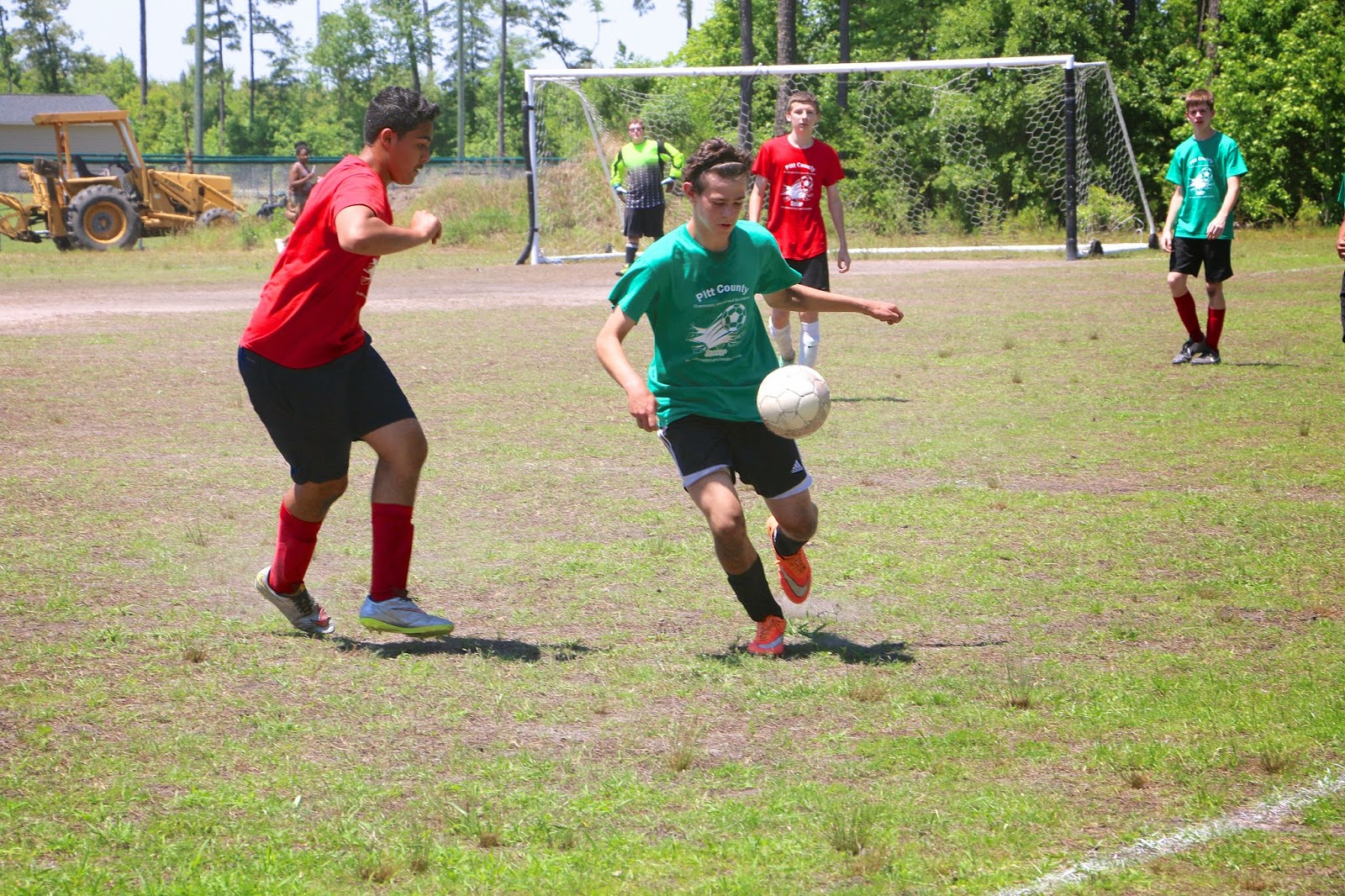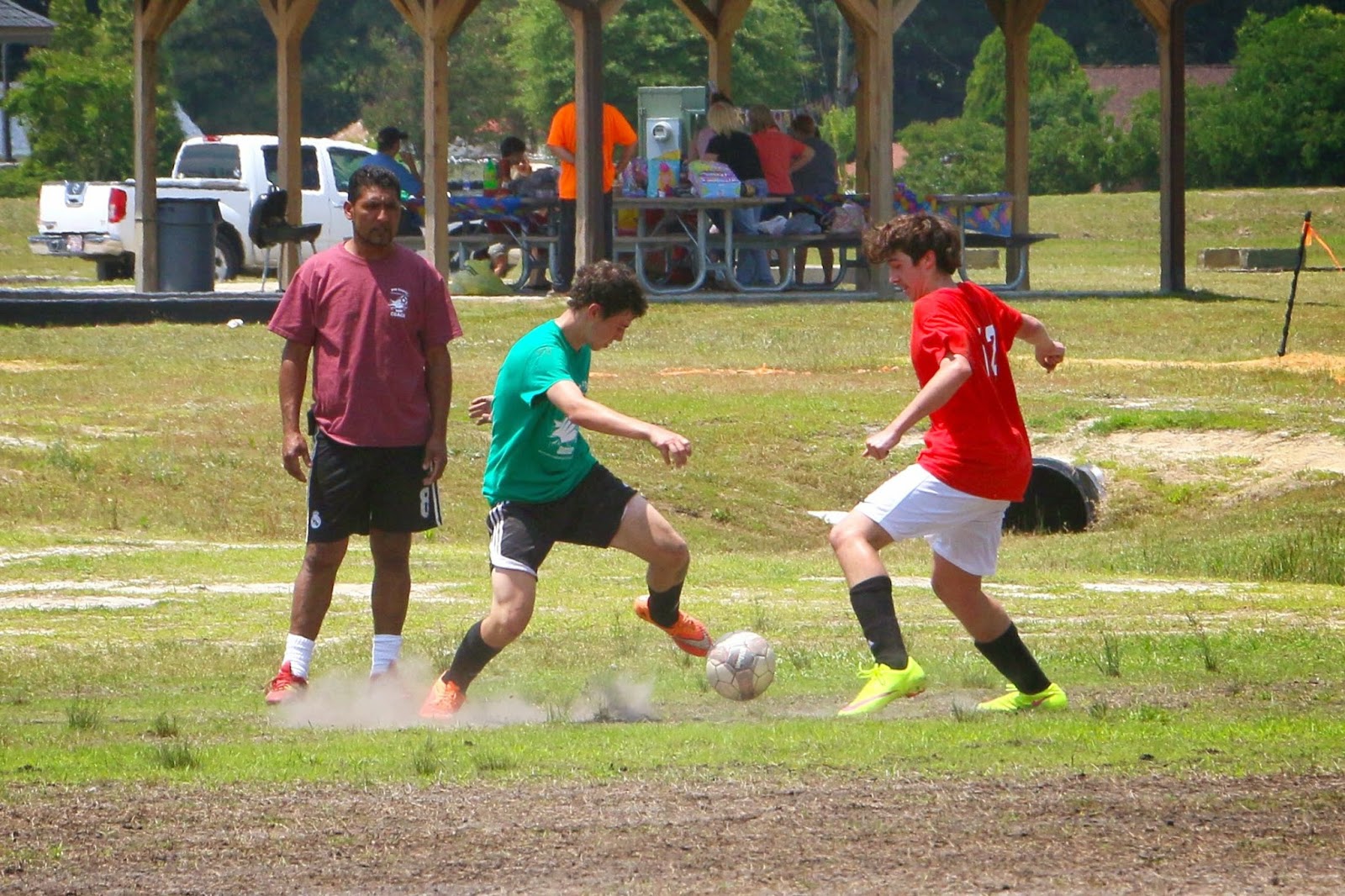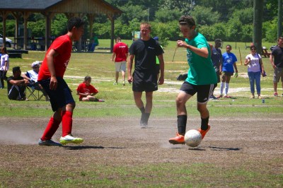 Alex’s team lost a tough one a couple of hours later as his team only had 7 players and the other team had 11. The other team chose to play all 9 players and then sub when needed which meant Alex’s team was exhausted by the end of the game. Even being down 2 players, Alex’s team kept it close until the final minute when the other team pulled ahead 3-2. The ensuing kick-off resulted in a very quick goal for Alex’s team but the whistle had just been called and it was ruled a no-kick.
