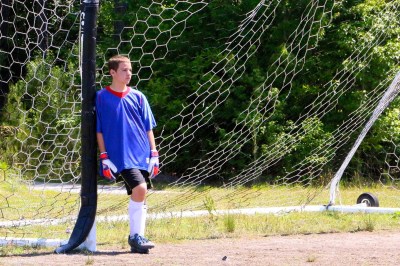 Another split decision today as Sam’s team won again by a landslide and Alex’s team lost to the same team as last week being short handed 1 player this time around. Sam had 3 saves in today’s game but spent the rest of the time leaning up against the cross bars or posing for Mom (Sam did stay up until 3am last night as he went to an end of the year party at a friends house).