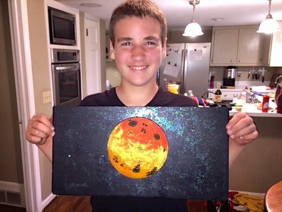 Sam had to do a project for science class on the planet Venus. The teacher gave some specific directions on the size of the planet/project, but the rest of was up to him based on what he learned… or at least up to Mom and Sam on how to decorate. The duo combined for a 99% on the project with a little construction consultation from Dad. 🙂