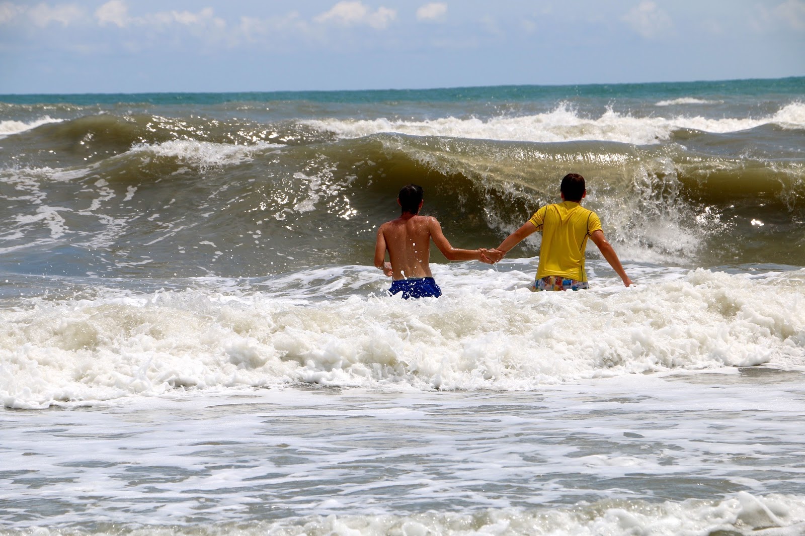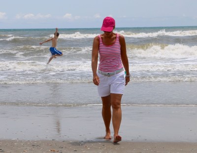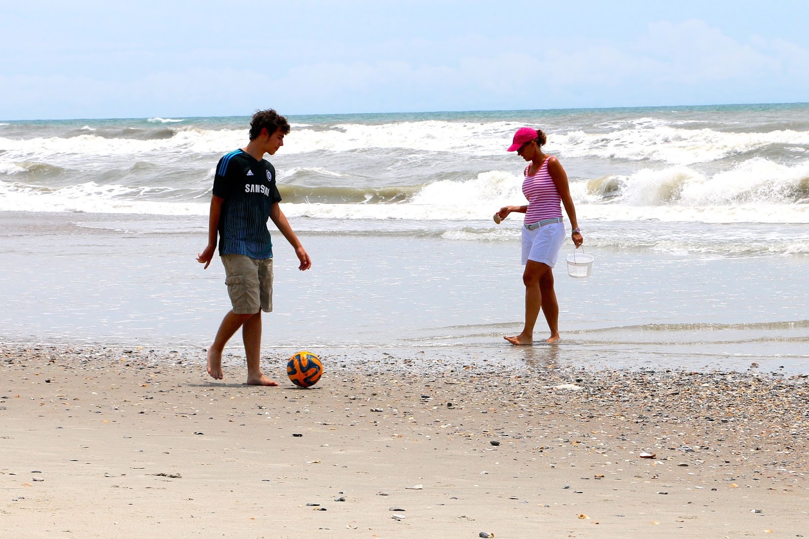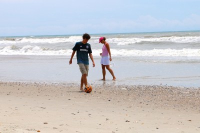 We made a trip to the beach on Monday to enjoy the beautiful weather and take Sam down for his scuba diving class. Unfortunately the scuba class was rescheduled due to the water being too murky. There were some high winds off the coast stirring things up a bit, but we did reschedule for July 11th so we will make another trip down then. One good thing about the wind was that it produced some nice waves for the boys to enjoy and kept the temperature down on the beach. Overall the weather was perfect and the boys had a great time – they both were so tired they slept on the way home. 🙂