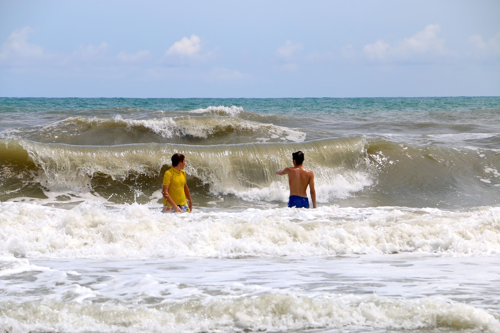 There were some surfer dudes enjoying the waves a little farther down from us.