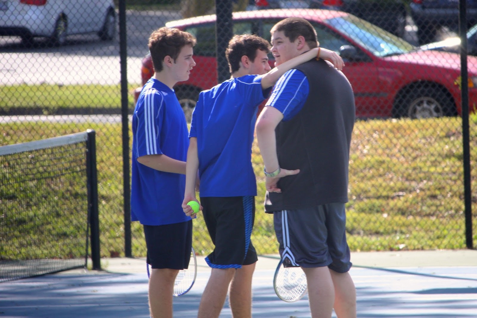 Alex and Sam had their first tennis match of the season. Alex and Sam both lost their singles match – neither won any of their sets (8-0). The doubles matches were much better as Sam and Ty ended up losing 8 sets to 5 and Alex and Troy won their doubles match 8 sets to 5. Alex and Troy had a death match that would just not end – going at least an hour and a half. At one point, Mom, Sam and Dad all went back to the car to get warm as it was quite breezy. After sitting in the car for almost 30 minutes, we all thought the match would be almost over. In reality they had only played 2 sets during that time. The last set lasted at least 20-25 minutes by itself and all the parents on the sidelines were laughing about missing dinner and how much longer it would go on. The match had at least 10 match points before Alex and Troy finally ended it to everyone’s relief.