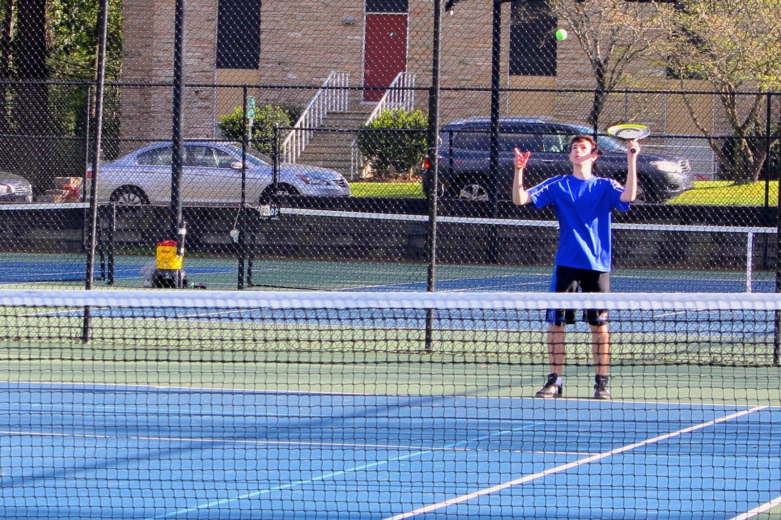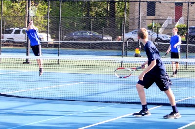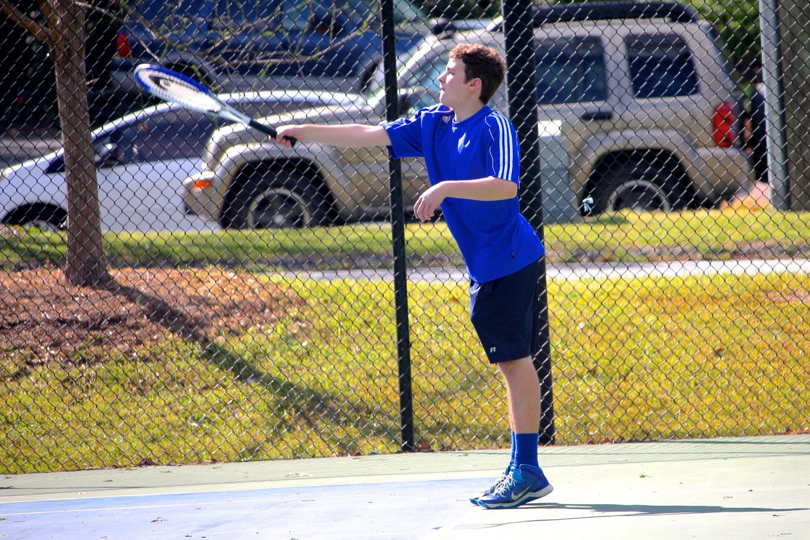 | Alex with a solid return volley. |
