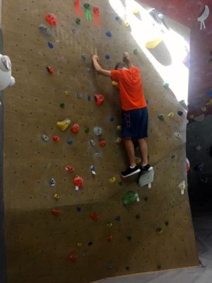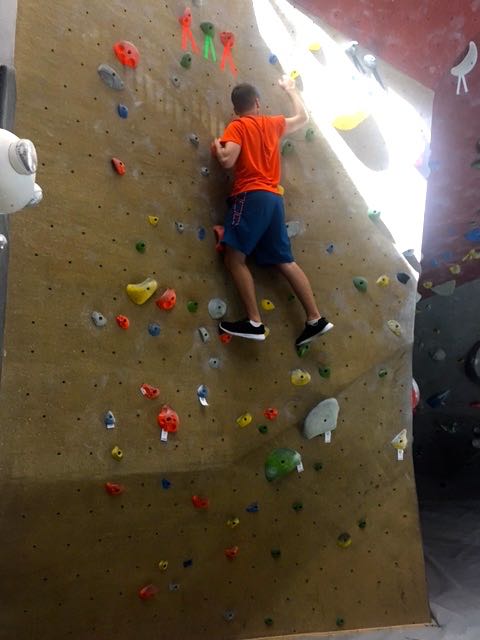 Alex got to go to the beach for the week with his friends, Matt and Jeremy in South Carolina. Matt’s parents have a time share plan and they get to go 3 or 4 times each year. So while Alex was away at the beach, Mom and Sam took a trip to Raleigh and went rock climbing. Sam got to free climb in the morning as the place was packed with ‘campers.’ After lunch with Mom and Dad, Sam went back and tried out climbing with the harness. Sam had a great time, but rock climbing may not be his thing…. which is probably a good thing, scuba diving is enough. 🙂