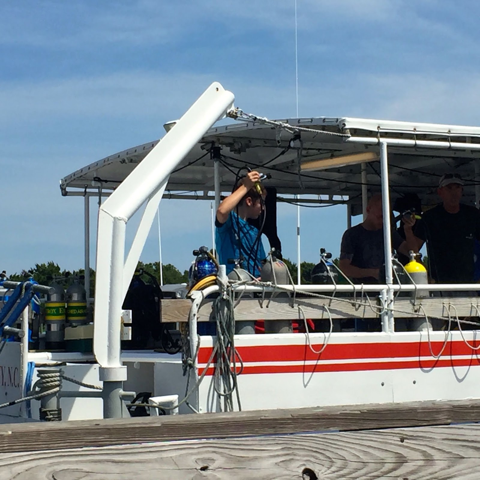 We drove down to Morehead City to take Sam to dive at Olympus Dive but right before we got there the Captain called in and said the weather was deteriating too fast and they canceled the afternoon dive for today. Sam was pretty disappointed as this is the 3rd one he has missed this year due to weather. He has another one scheduled next weekend so let’s keep our fingers crossed. We did spend a few minutes on the beach but we heard it thundering and thought it might be a good time to head home.