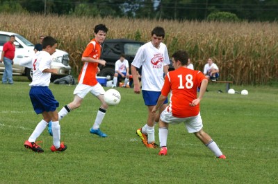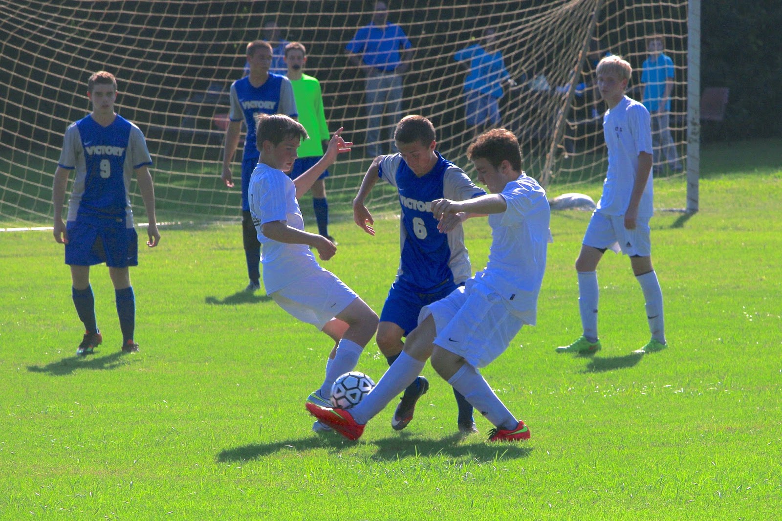 After a very disappointing loss last week, TCS soccer was back on the pitch yesterday and playing at home in quite warm (mid 90’s) weather. Alex came to watch his brother, but he had to come straight from class and was quite warm in his skinny jeans. 🙂 Although they played quite sloppy at times, TCS did manage a 5-3 victory against Victory Christian School. Since the team lost Alex, Zach and Cole from last year’s team (last year’s seniors), it doesn’t seem that they have found a rhythm yet as they have a lot of new people in position. Sam didn’t get the start today, but when he did get quite a bit of playing time in at midfield instead of defender! Yes – you read that correctly, Sam played midfielder yesterday and he played extremely well. Sam has improved 200% over last year and is receiving praise from the coach and the fans. Yesterday, Sam had 2 sliding tackles, one assist (almost a 2nd one earlier in the game) and had some beautiful passes. Again, you read that correctly – 2 sliding tackles and 1 assist! He still had a couple of air kicks, but the majority were very solid and on point… no more of the crazy foot where you don’t know where the ball is going to end up. We are very proud of Sam and can’t wait to see how good he is by the end of the season.