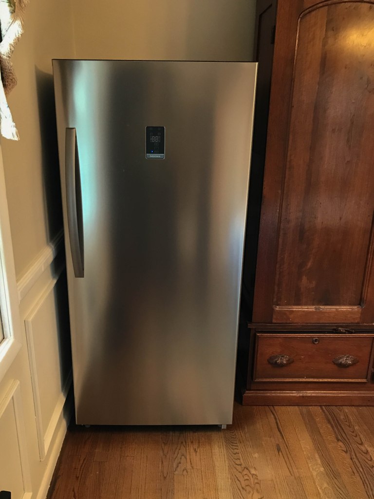 The irony here is that we really thought that the chest freezer would go first – it was a few years older and sits in the garage all year… even when it’s 100° outside. The chest freezer also really needed to be defrosted and since we had quite a bit of food stocked up due to the pandemic we didn’t want to take any chances and ordered an upright freezer. Once again, just got lucky on this one too because Best Buy had been sold out for months when this one popped up on the website one day. It still took about 5 weeks to finally get it delivered (just a few days after we got the new refrigerator, but both the freezer and the refrigerator now have a new home.