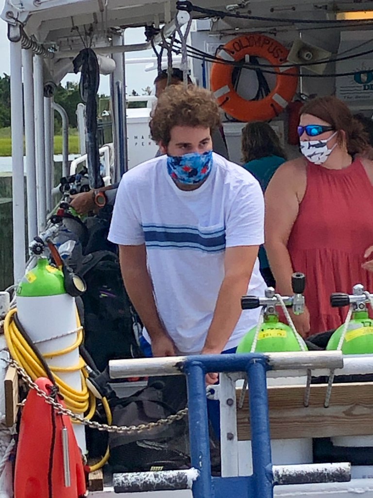 Sam has had a successful summer of dives this year and is now getting ready to take the advanced class which will allow him to use nitrox and dive to 150′ (Sept 13th). Sam is currently just using ‘air’ and can only dive to 60′. He completed 5 dives this year: 3 ocean dives and 2 dives at the Quarry to get him ready for the course. The dive shop (Rum Runners) teaches the advanced class and 3 dives is included in the price to make sure he is certified. Sam shifted to a larger tank on his last air dive and was able to easily handle the heavier tank and he has improved quite a bit in managing his breathing… he was getting too excited and using too much oxygen before. Usually when Sam goes on one of the ocean dives, Mom and Dad will spend the day at the beach waiting for him so below are some photos of Sam and some photos from the beach too.