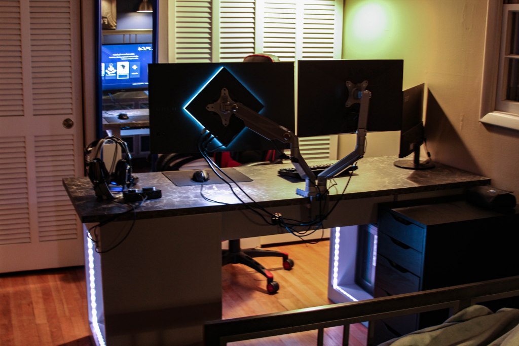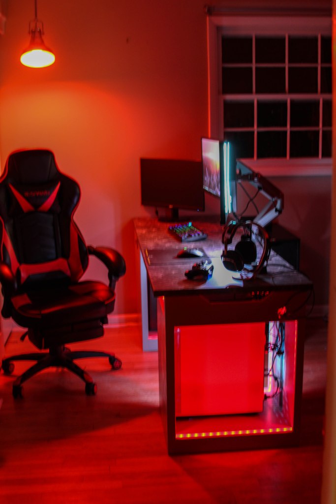 One last update and I think we might be caught up from the Pandemic induced drought this year has brought. This one is just an update about Alex’s birthday present. One of Alex’s gift this year was a new custom built gaming desk. Of course the only catch was that it still wan’t anywhere close to be finished on his birthday. Today we finally put on the finishing touches and hooked it up in his room. We still have a couple of minor things to tweak but he is loving it so far. Just as an FYI – there are 2 desktops, 3 monitors and a PS4 installed. There are also multicolored LED lights that operate off a switch on the back side of the right hand tower and the room is set with multi-colored HUE lights that work off an app on his phone. If you ever wanted to induce epilepsy this might just be the place. 😃😃😃