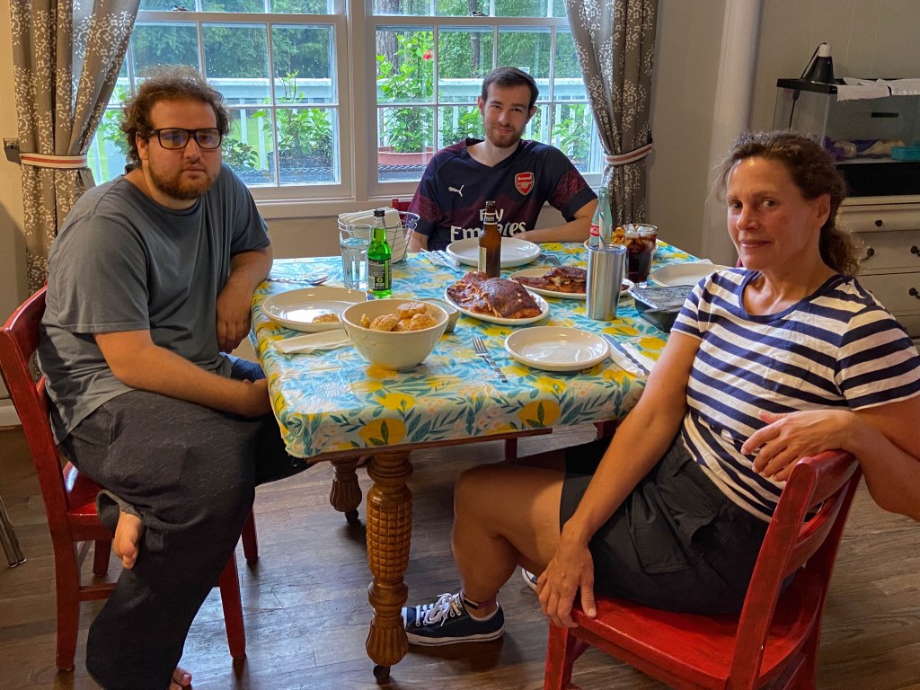 Well it must be a party because Dad has the salmon on the grill! We had to celebrate the birthdays a little early this year, because Sam had a dive on the 15th of August. We chose the weekend before, August 7th, to celebrate Alex’s birthday, Lis’s birthday and Mom and Dad’s anniversary. Alex chose salmon for his birthday dinner and Mom had grilled shrimp this year, while he had some seasoned potatoes and French fries for the sides. We also had an untraditional, but very decadent chocolate and caramel cake for dessert. Alex, unfortunately, did not get an actual present on his birthday as it was decided we were going to get him a new bed. We looked several places and found one he liked at Ikea, but it wasn’t in stock at the time. As soon as it is available, we will go out and pick it up for him, along with some new sheets and maybe a new dresser. Not an exciting birthday present, but one that he needs and will be able to use for a few years… besides he is 23 years old. 😄 Mom on the other hand hit the jackpot as she got 2 new outdoor hose attachments for the garden AND a set of hand stitched wool dryer balls…. can you believe it!! On top of all of that for her anniversary present she got what every woman wants on her 26th anniversary…. a worm farm! We still haven’t started the farm yet though, as it is surprisingly complicated and a little too hot right now. She does have a gift card for 100 red wigglers though whenever she is ready. Mom and Dad will also be going out to dinner next weekend while Sam is on his dive… hopefully to get some crab cakes in Wilmington.