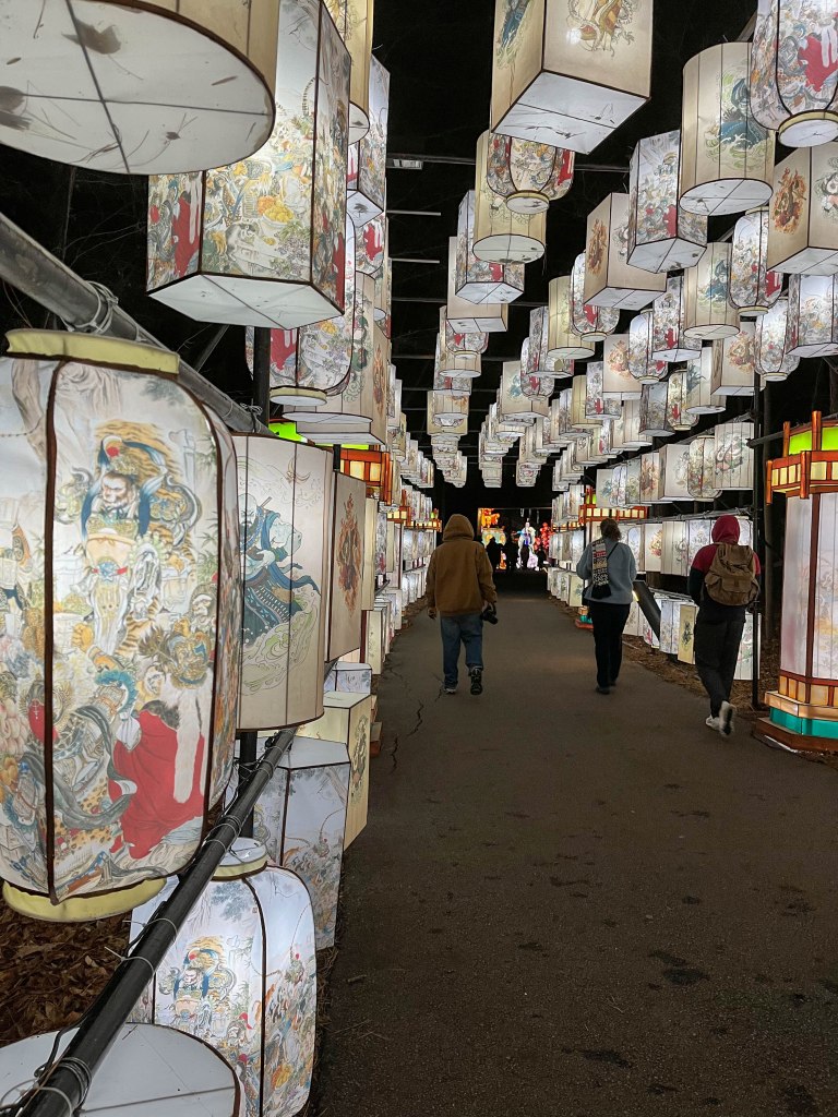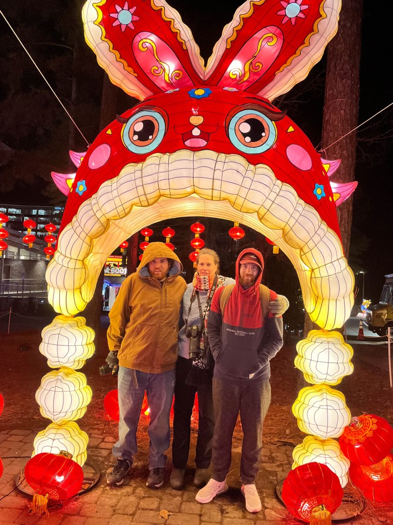 Last week we (Mom, Dad, Alex & Sam) had a chance to go to the Chinese Lantern Festival in Raleigh. The event has taken place for several years now over the holiday season, but since we lived in Greenville, we never made the trip up and last year was a little hectic. Each year, the lanterns are made in China and travel by boat to Wilmington, NC and then by truck to Raleigh where they are reassembled. This year there were 40 lanterns on display and of course we probably took a couple of hundred photos between the 3 of us. 😉 The link below will take you to an online brochure of the event: https://online.flippingbook.com/view/408593009/2/
