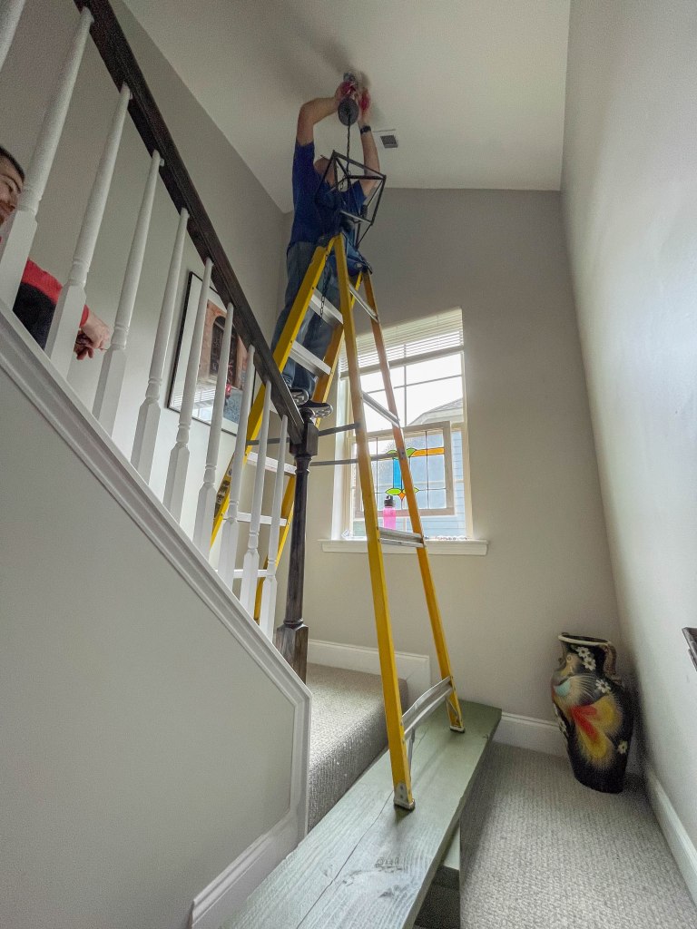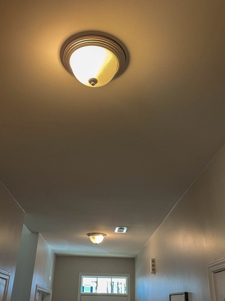 Project 1: The last of the boob lights were finally replaced! The downstairs hallway and the stairway landing all got the same light fixture.