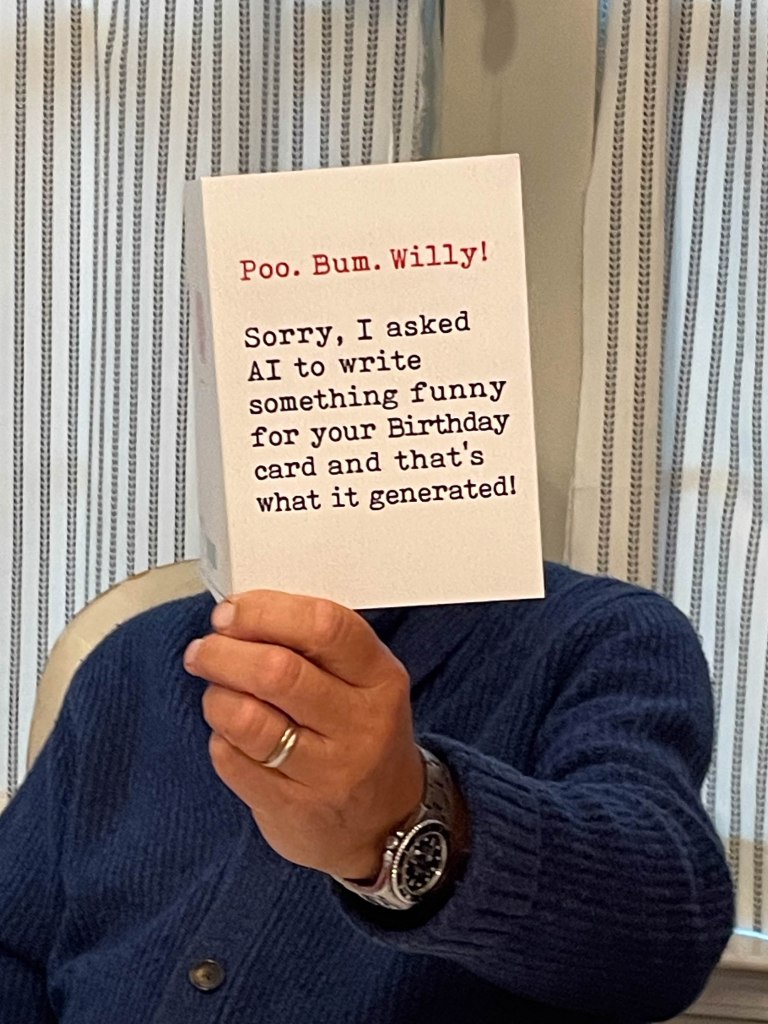 For Mother’s Day this year we had a lovely dinner for everyone, including shrimp and salmon with all the sides. We also had some humorous Mother’s Day cards – the dollar store never lets us down for these cards. 😊