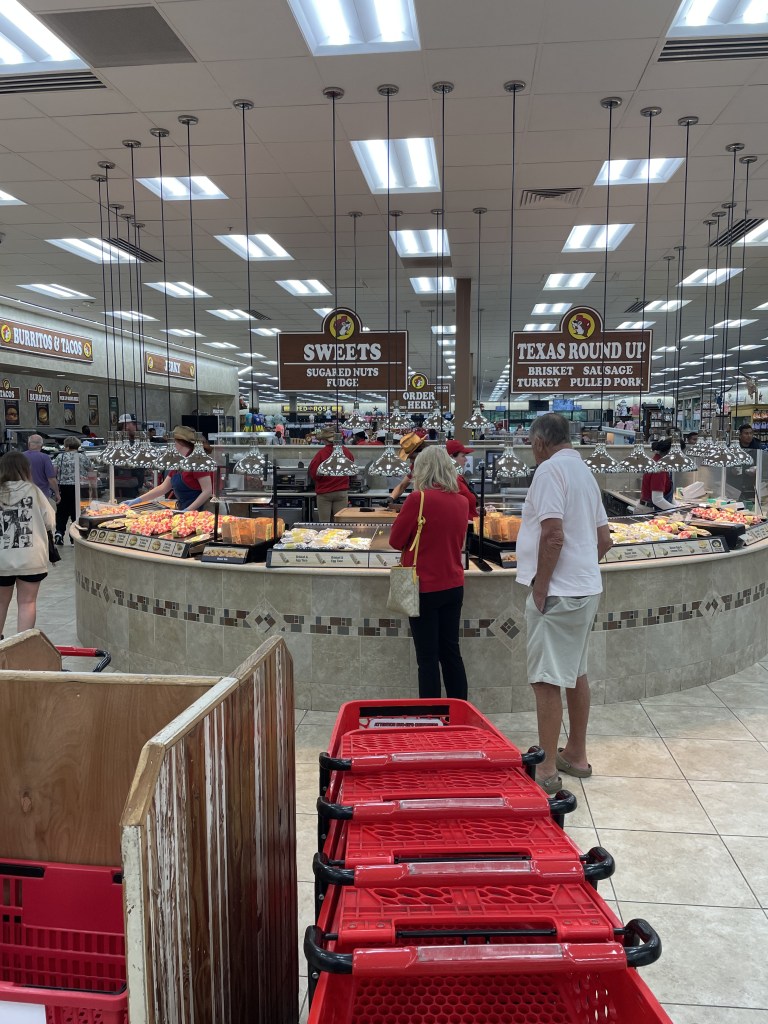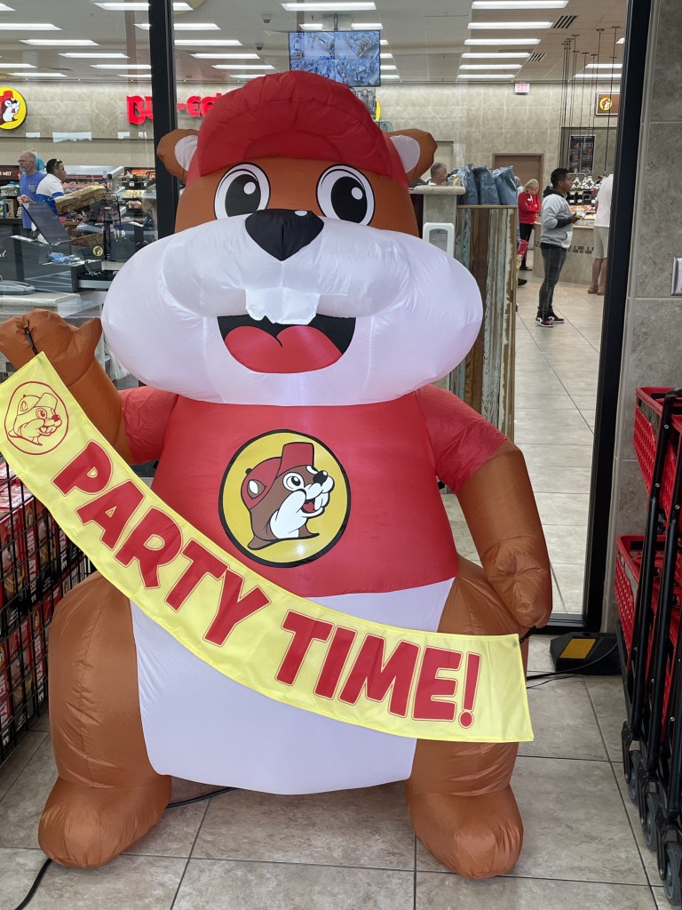 Of course, Sam’s birthday isn’t until June, but since hotels are quite a bit cheaper now and the crowds are obviously smaller with school still in session, it seemed like a great time to schedule the dive. So last week we took off for Atlanta – about a 6.5 hour trip from home… or at least it should have been. Traffic, thunderstorms, construction and several stops along the way delayed the trip a couple of hours both ways. We did, however, get to stop and see our first Buc-cee’s mega Gas Station/restaurant/destination location in Florence, SC. If you haven’t heard of Buc-cee’s – it’s kind of a big deal (https://www.usatoday.com/story/graphics/2023/11/22/why-are-buccees-gas-stations-so-popular/71342752007/). They have over 100 gas pumps and it’s well known for it’s brisket, beef jerky and pulled pork sandwiches.